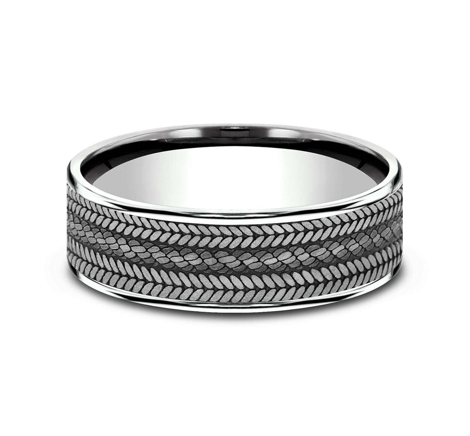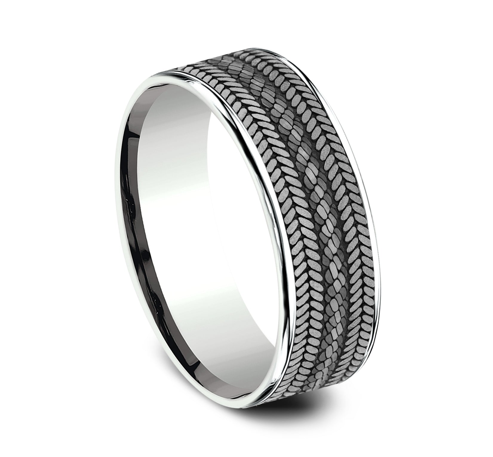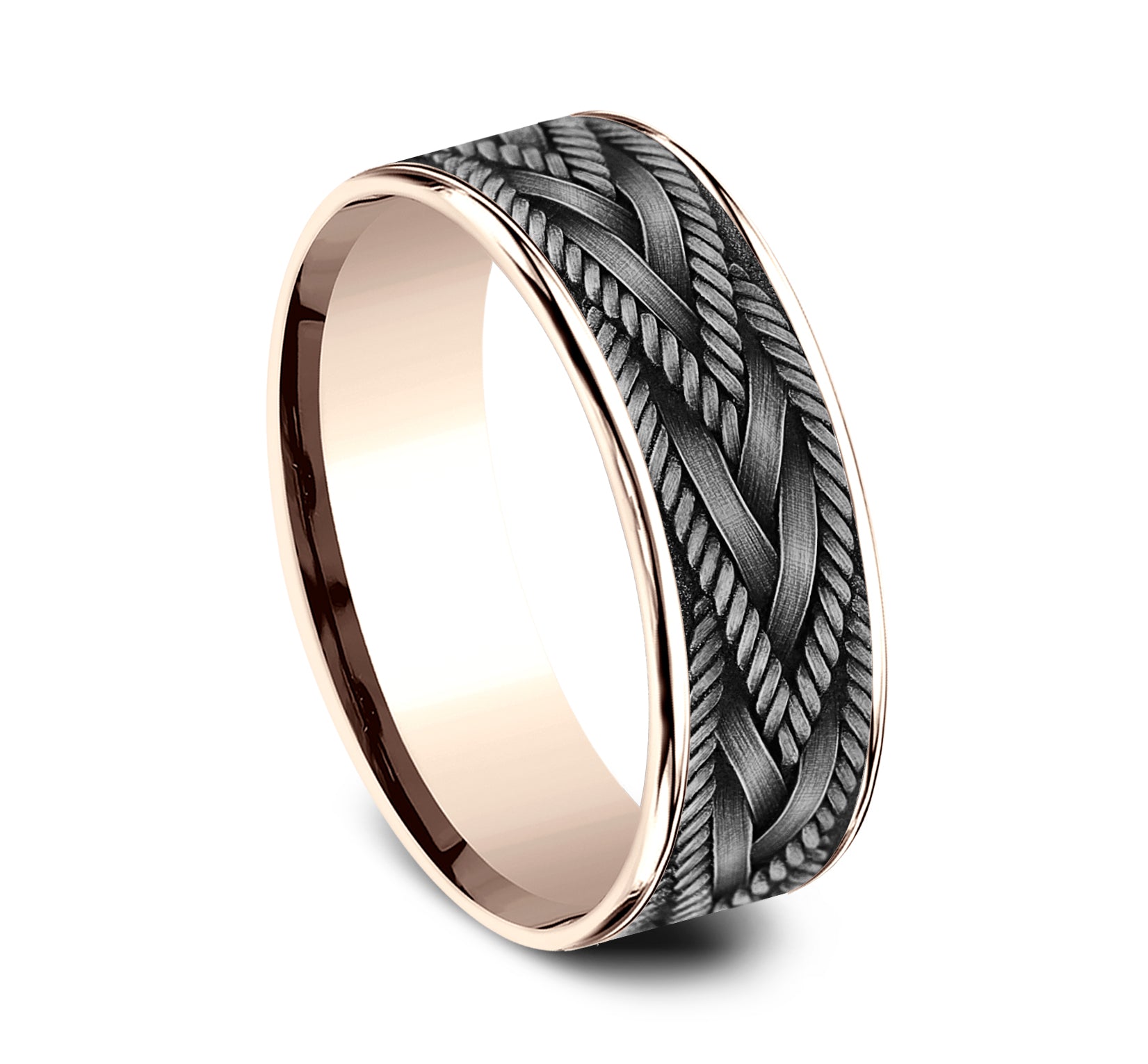 7.5mm, Comfort fit Grey Tantalum and 14K Yellow Gold Rope and wheat knot braid pattern, thin edges