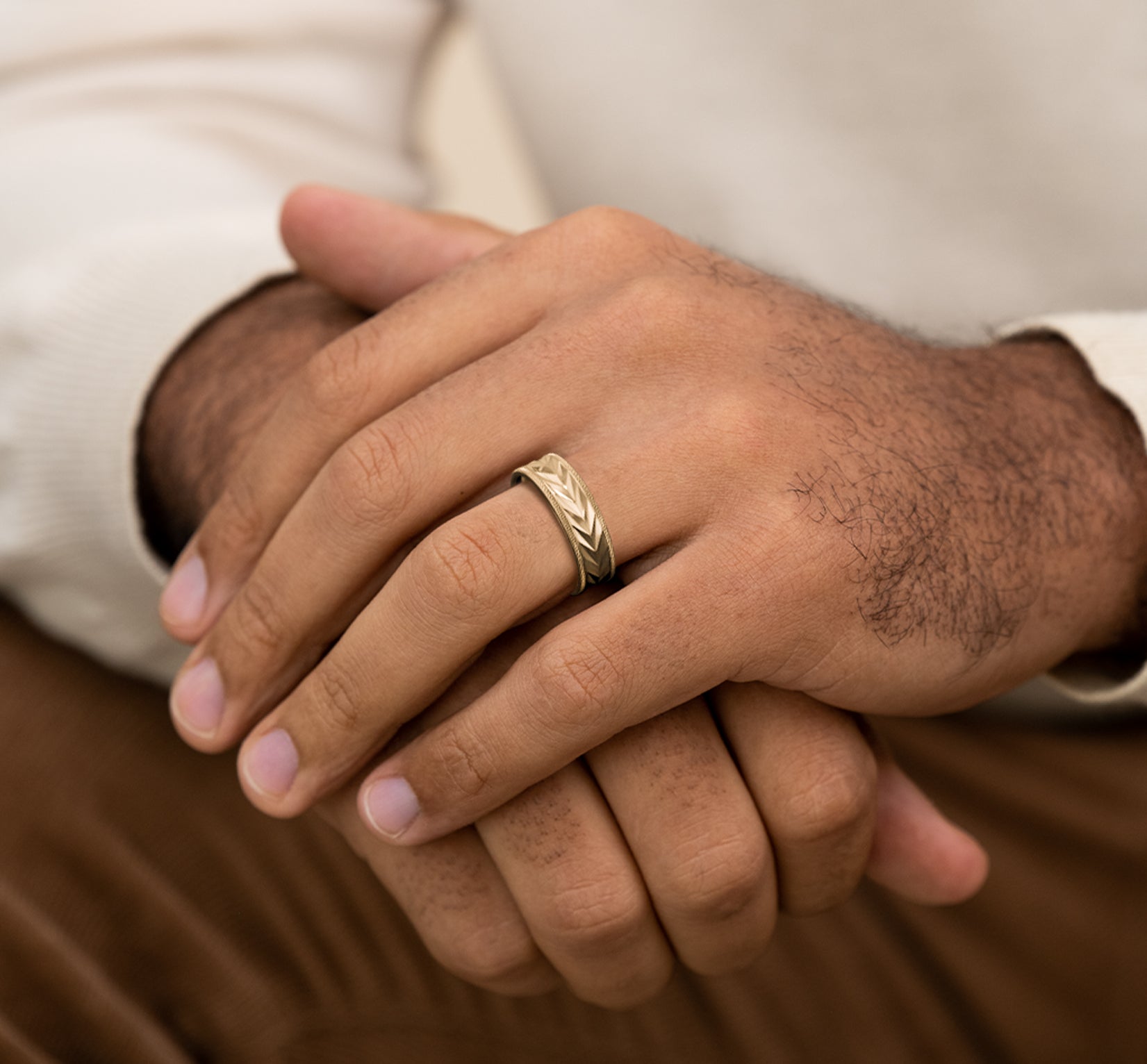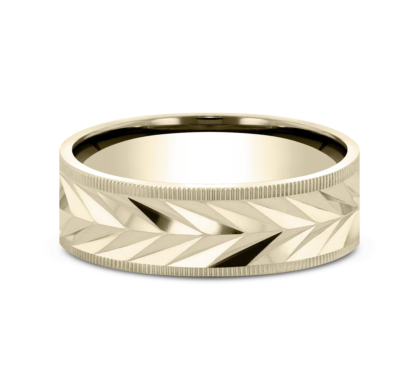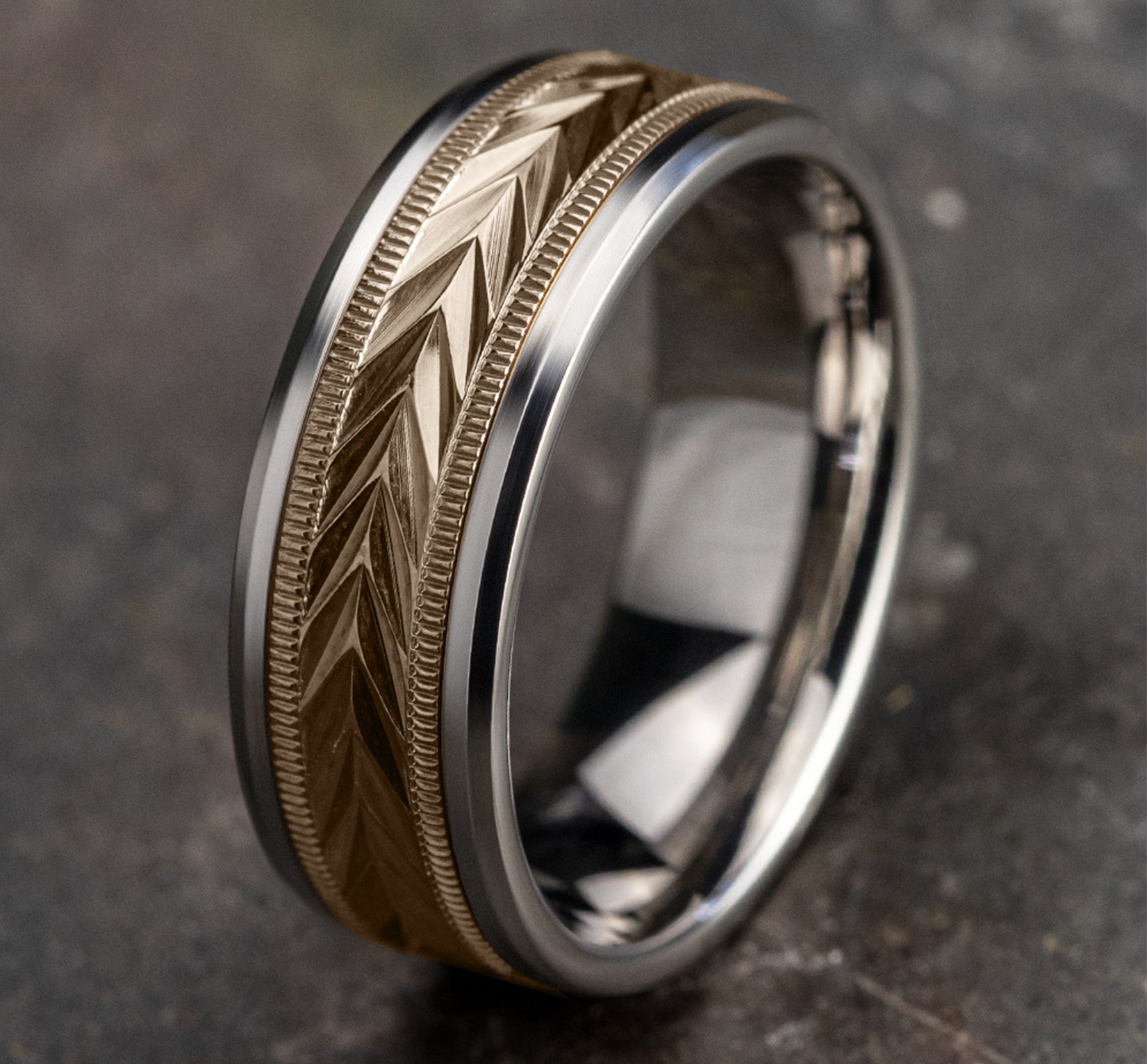 8mm, Comfort fit 14K White and Rose Gold Wheat pattern with milgrain detail, polished bevel edges
