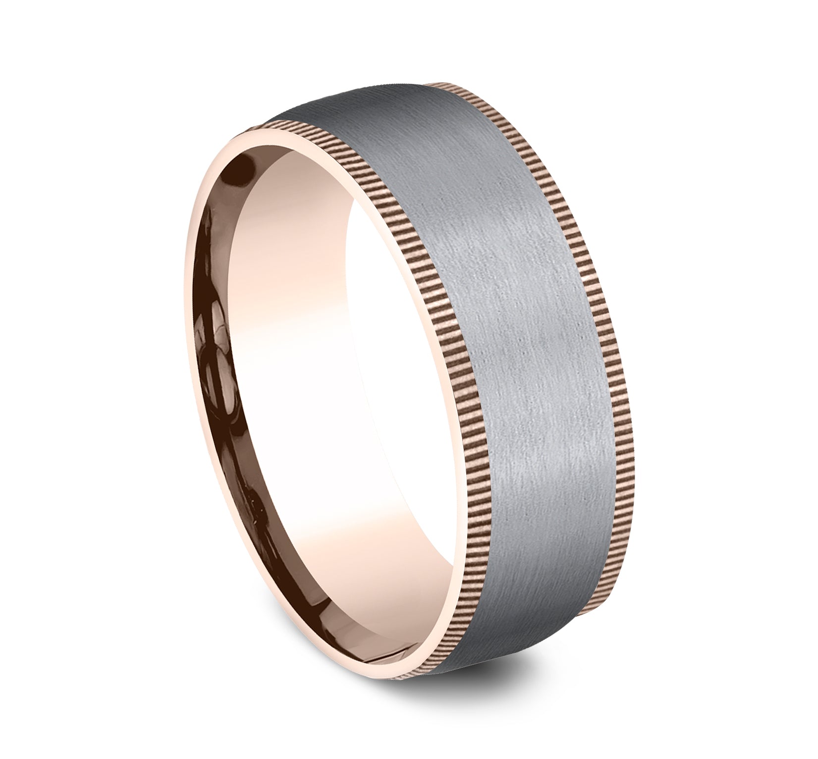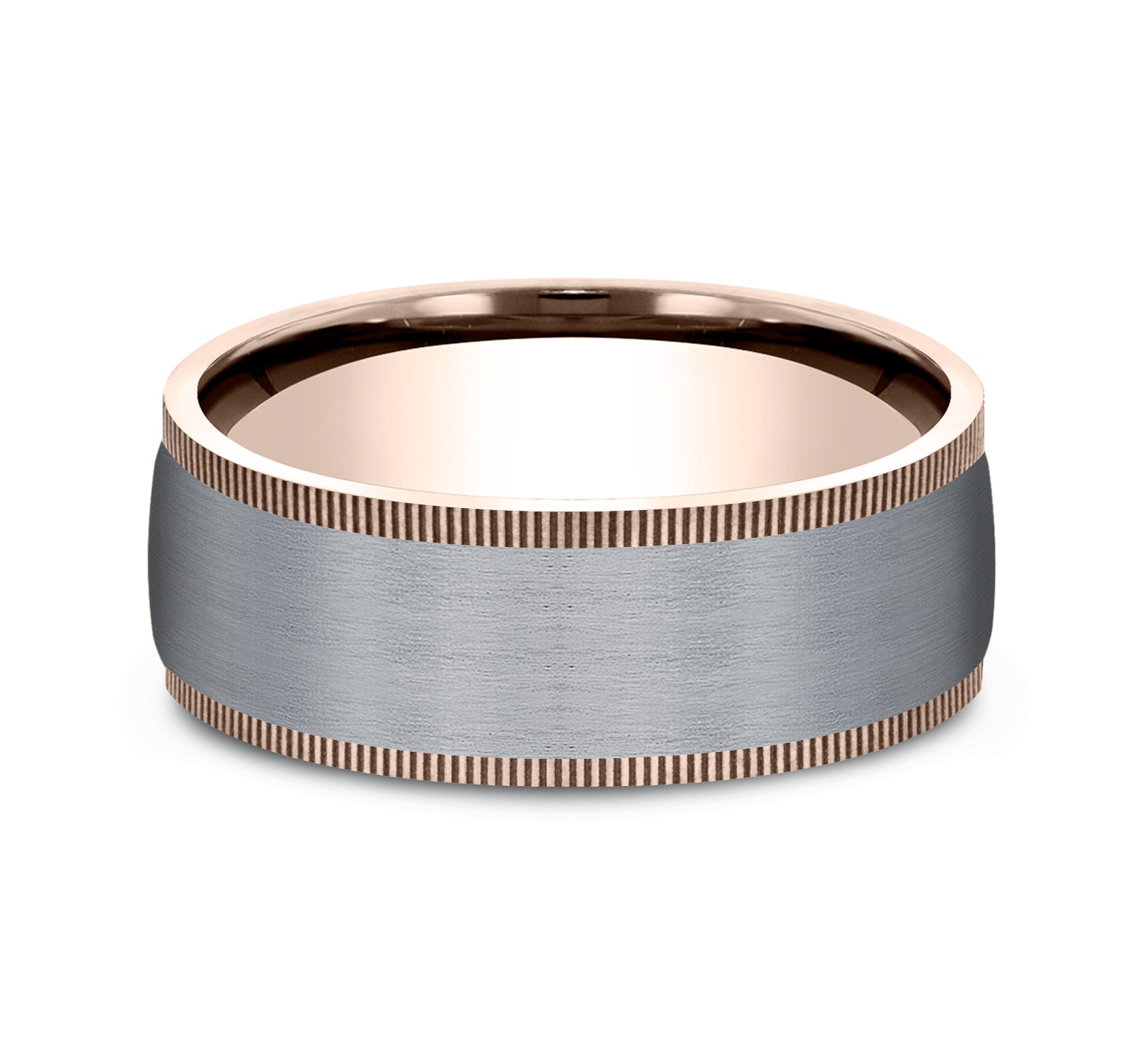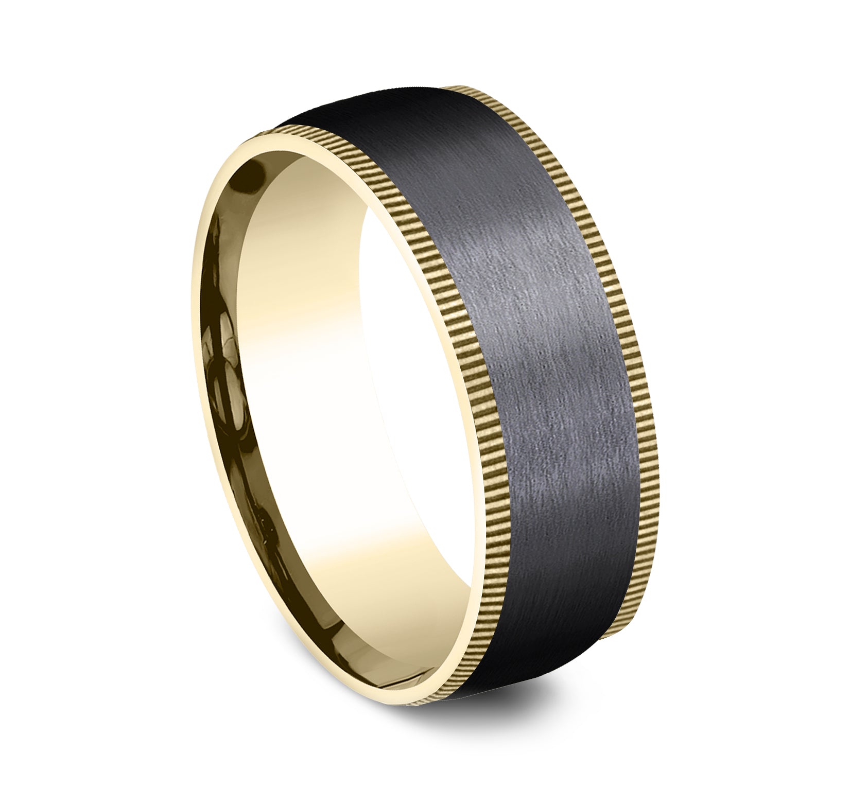 8mm, Comfort fit 14K Yellow Gold and Black Titanium Satin center, thin coin edges