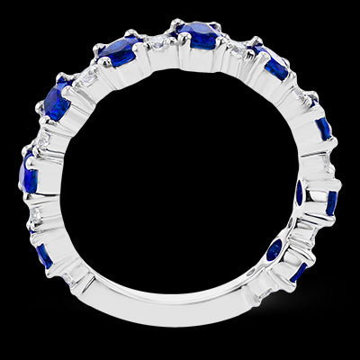 The perfect addition to any stack or bold enough to stand alone, this 18K white gold band showcases 1.69cttw oval sapphires and .35cttw diamonds.