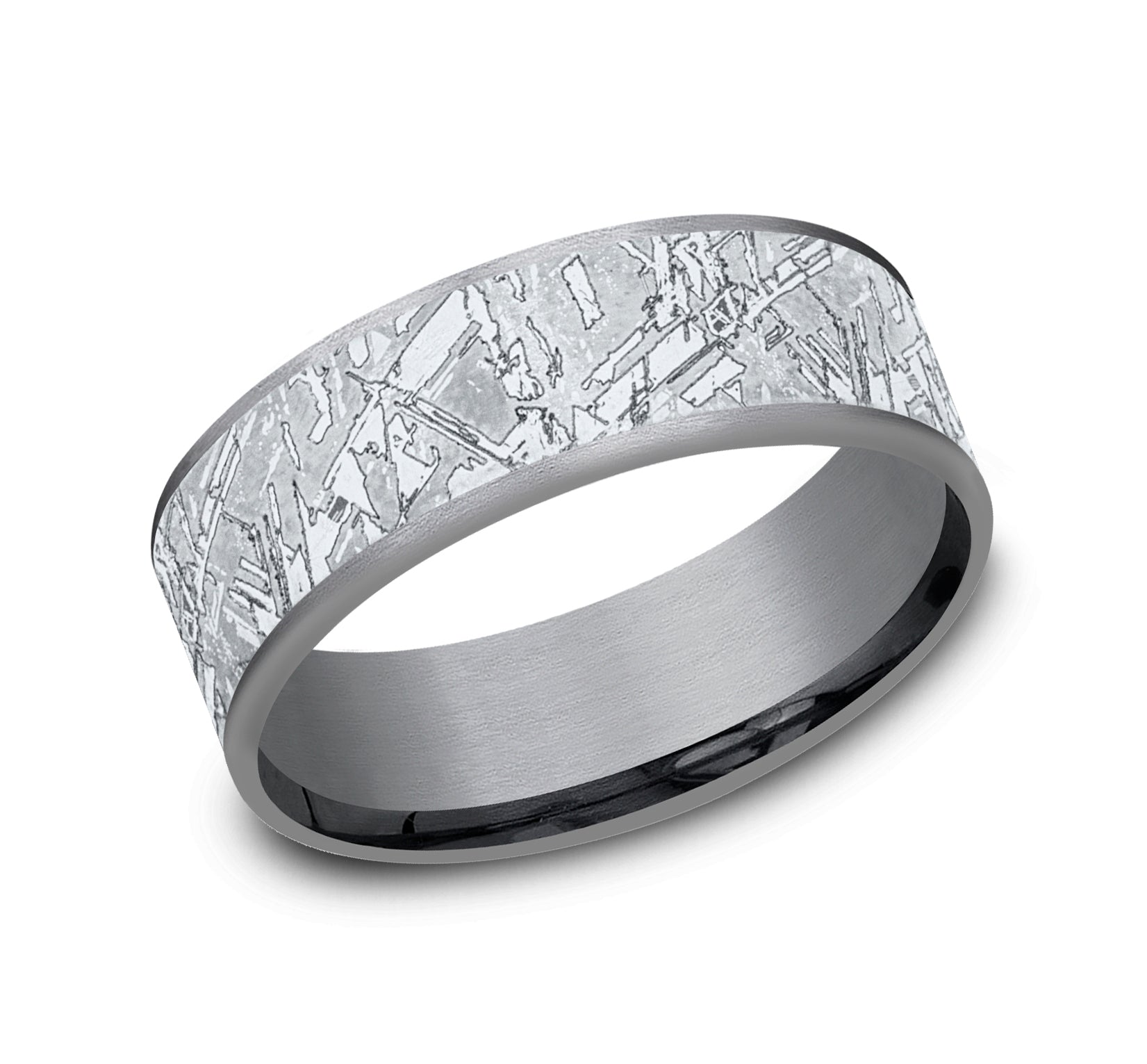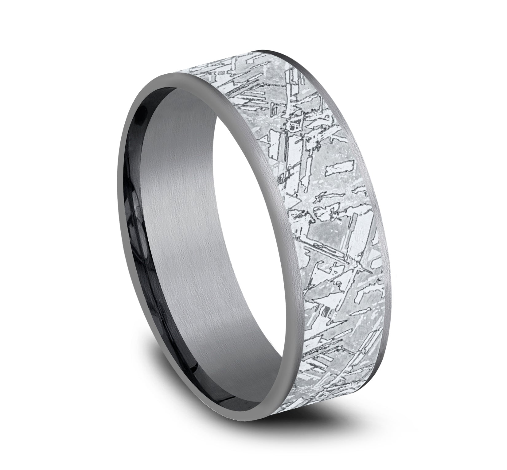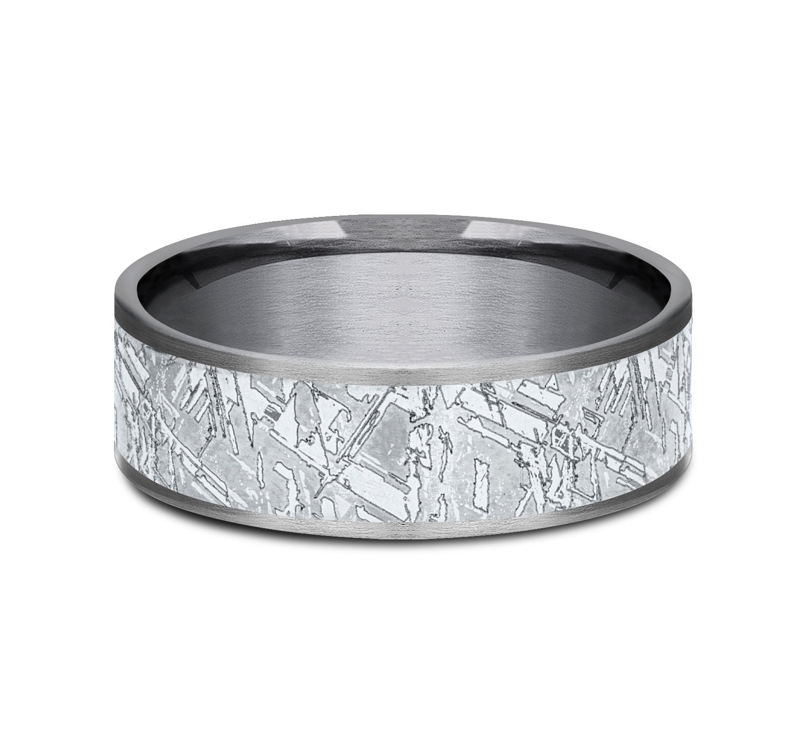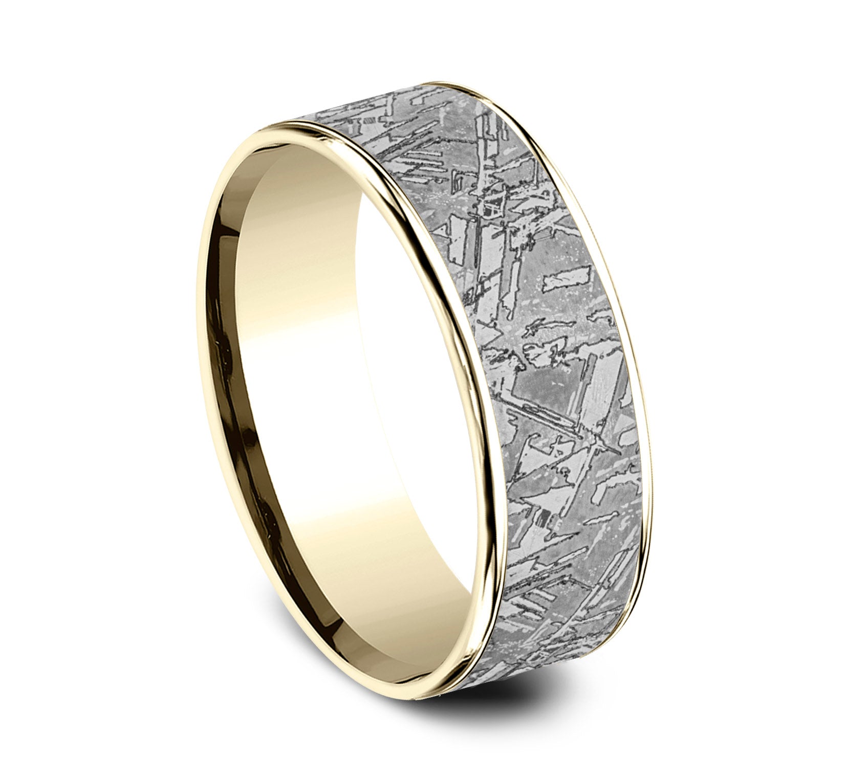 6.5mm, Comfort fit Grey Tantalum and 14K Rose Gold Meteorite pattern